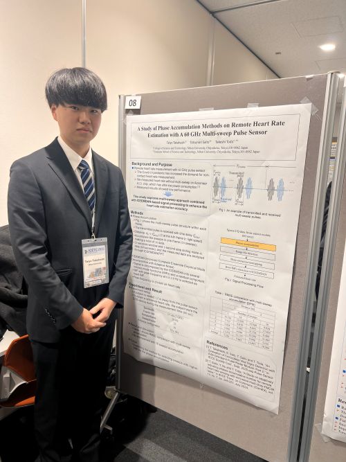 2023年電子情報通信学会ソサイエティ大会が2023年9月12日~15日名古屋大学東山キャンパス(名古屋市)で開催されました.社会人博士後期課程2年生のYaokun Huさん, 博士前期課程1年の大津 孝介さん, 学部4年の斎藤 龍憲さん,学部3年の長山 颯良さん(未来博士工房)が研究成果を報告しました.皆さん,これまでコロナ渦でオンラインの経験しかなかったところ,さらに暑中,4日間たいへんお疲れ様でした.オンラインではなく対面で,自身の発表と発表セッション内聴講だけでなく,論文の書き方講座(Q&Aセッション),さらには,他の一般セッションやシンポジウムセッションへの出席を通じて,他大学・企業や国立研究機関での様々な研究者・研究発表に真近で接し,刺激,新しい研究アイディアの着想を得たことと,さらには将来のキャリアへのモチベーションアップに繋がったのではないか!?,そうであれば甚だ幸いです.教員も,コロナ渦後初めての,3年半振りの対面学会出席4日間を通して,オンラインでは得難い,様々な意味での実りの種を多く得ることができました.