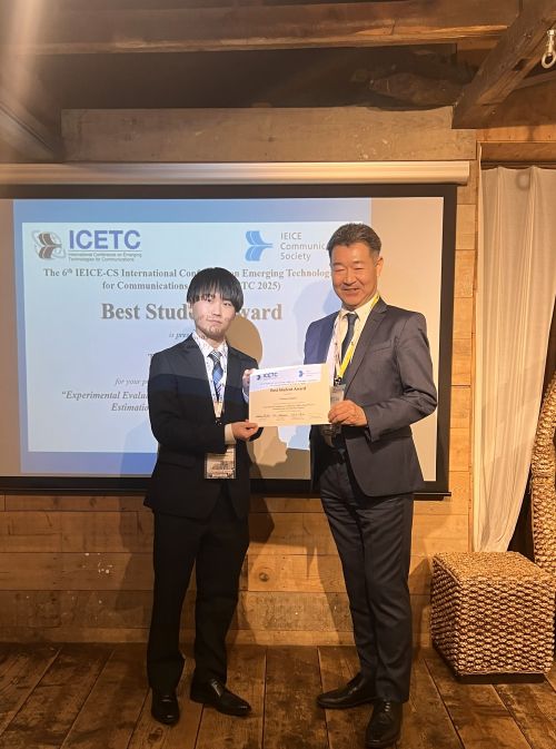 修士2年生の佐藤駿佑さんが2021年12月1-3日に開催された2021 International Conference on Emerging Technologies for Communications (ICETC2021) にて"Student Presentation Award"を受賞しました.