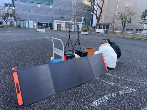 前回,10月20日の実験に引き続き,今回はデスクトップPCを使用するためポータブル電源&ソーラーパネルを使用しての屋外アンテナ校正実験.寒い中お疲れ様でした.