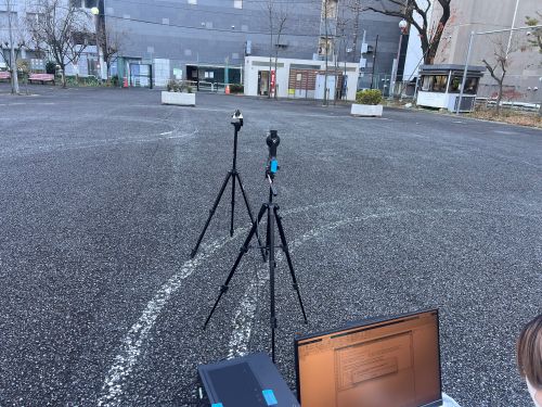 MIMO (Multi-Input Multi-Output)アンテナを有するセンサで,複数アンテナを活用してバイタルサイン計測やビームフォーミングを高精度に行う場合,送受信アンテナチャネル間の位相や振幅の差を明らかにし補正する必要があります.厳密には電波暗室やオープンスペースで行う必要がありますが,今回,研究室近くの公園でデータ取得を行いました.
